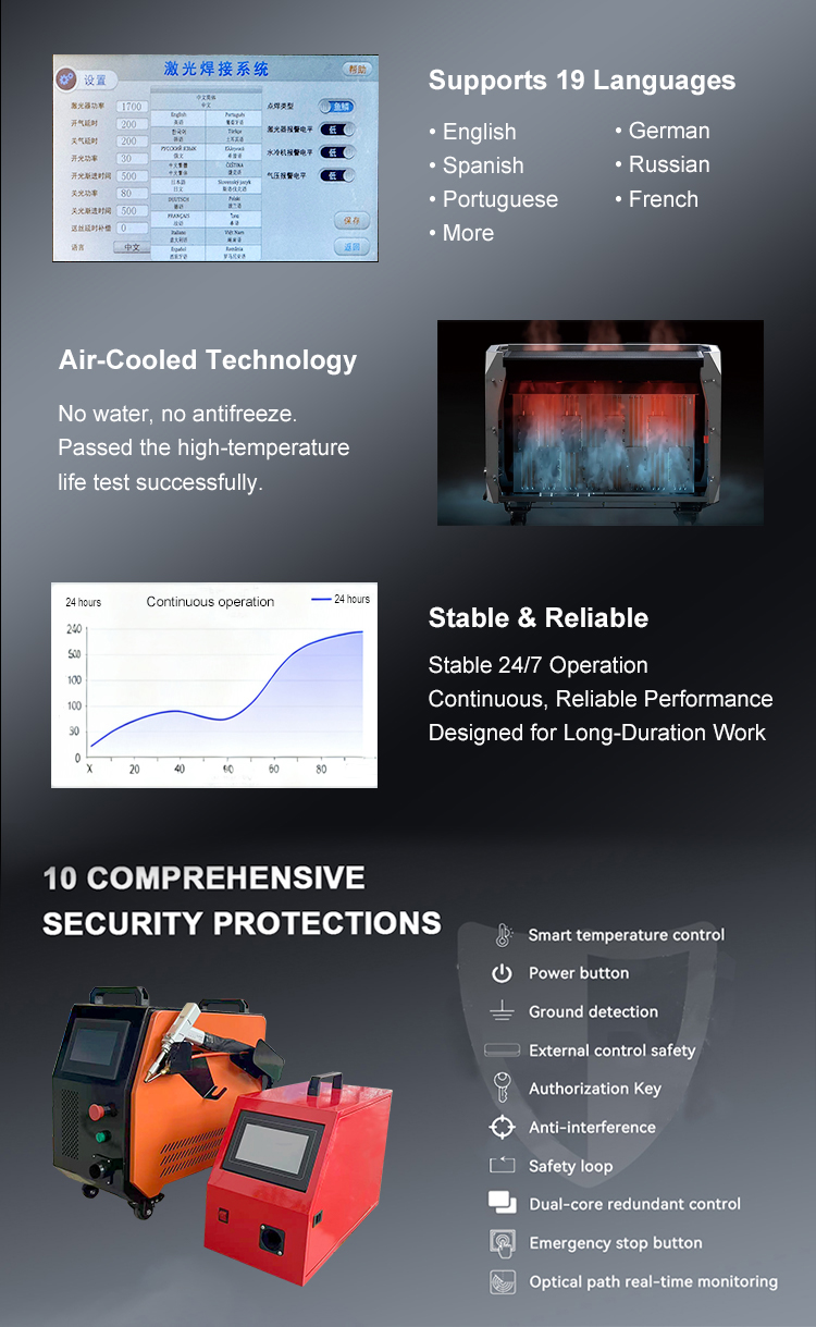 Grab-and-Go 800W 1200W Air-Cooled Handheld Laser Welding Machine သည် လျင်မြန်သော၊ ထိရောက်ပြီး လွယ်ကူသောလည်ပတ်မှုအတွက် ဒီဇိုင်းထုတ်ထားပြီး လျင်မြန်သောအလုပ်ရုံပတ်ဝန်းကျင်အတွက် ပြီးပြည့်စုံစေသည်။ ၎င်း၏လေအေးပေးထားသောဖိုက်ဘာလေဆာစနစ်သည် ပြင်ပအအေးပေးစက်များမလိုအပ်ဘဲ တည်ငြိမ်သောစွမ်းဆောင်ရည်ကိုပေးစွမ်းနိုင်ပြီး ယုံကြည်စိတ်ချရသောထွက်ရှိမှုနှင့် ပြုပြင်ထိန်းသိမ်းမှုအနည်းဆုံးဖြစ်စေရန် သေချာစေသည်။ ကျစ်လစ်သော၊ ပေါ့ပါးပြီး လက်ကိုင်အသုံးပြုရန်အတွက် အံဝင်ခွင်ကျဒီဇိုင်းထုတ်ထားသည့် ဤစက်သည် သံမဏိ၊ ကာဗွန်သံမဏိ၊ အလူမီနီယမ်နှင့် အခြားပါးလွှာသောသတ္တုများကို ဂဟေဆော်ရန်အတွက် အကောင်းဆုံးဖြစ်ပြီး ချောမွေ့သောဂဟေဆက်ကြောင်းများကို ထုတ်ပေးကာ သတ္တုထုတ်လုပ်ခြင်း၊ ပြုပြင်ခြင်းနှင့် အသေးစားထုတ်လုပ်ခြင်းလုပ်ငန်းအမျိုးမျိုးတွင် အပူကွဲလွဲခြင်းကို လျှော့ချပေးပါသည်။