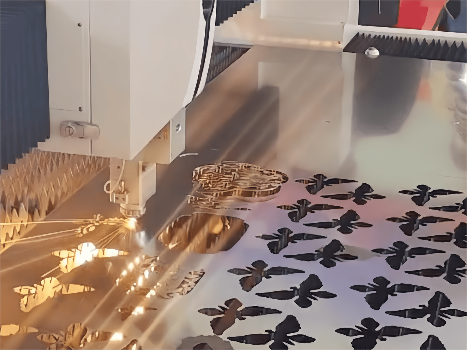အလယ်အလတ်နှင့်အထူပြားဖြတ်တောက်ခြင်း:အလယ်အလတ် - ထူကာဗွန်သံမဏိပြားများကိုဖြတ်တောက်သောအခါ (6-16mm) အပြုသဘောအာရုံစူးစိုက်မှုသည်များသောအားဖြင့် ဦး စားပေးရွေးချယ်မှုဖြစ်သည်။ ပစ္စည်းအပေါ်တွင်တင်ထားသည့်အာရုံစူးစိုက်မှုဖြင့်လေဆာရောင်ခြည်များသည်ပစ္စည်းမျက်နှာပြင်သို့ရောက်သောအခါပိုမိုပျော့ပျောင်းစေပြီး slag ကိုဖယ်ရှားခြင်းနှင့်ပိုမိုတောက်ပသောအရောင်များကိုဖြစ်ပေါ်စေသည်။